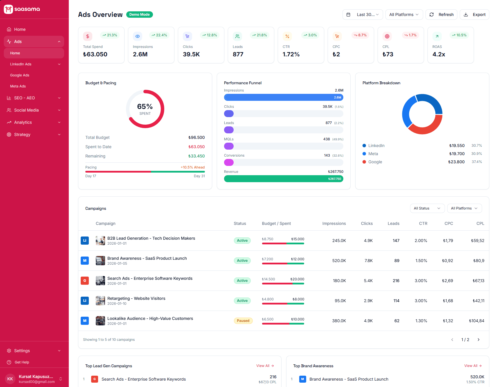 Targeted campaigns on Google, Meta, and LinkedIn that maximize ROI and reach the right audience.