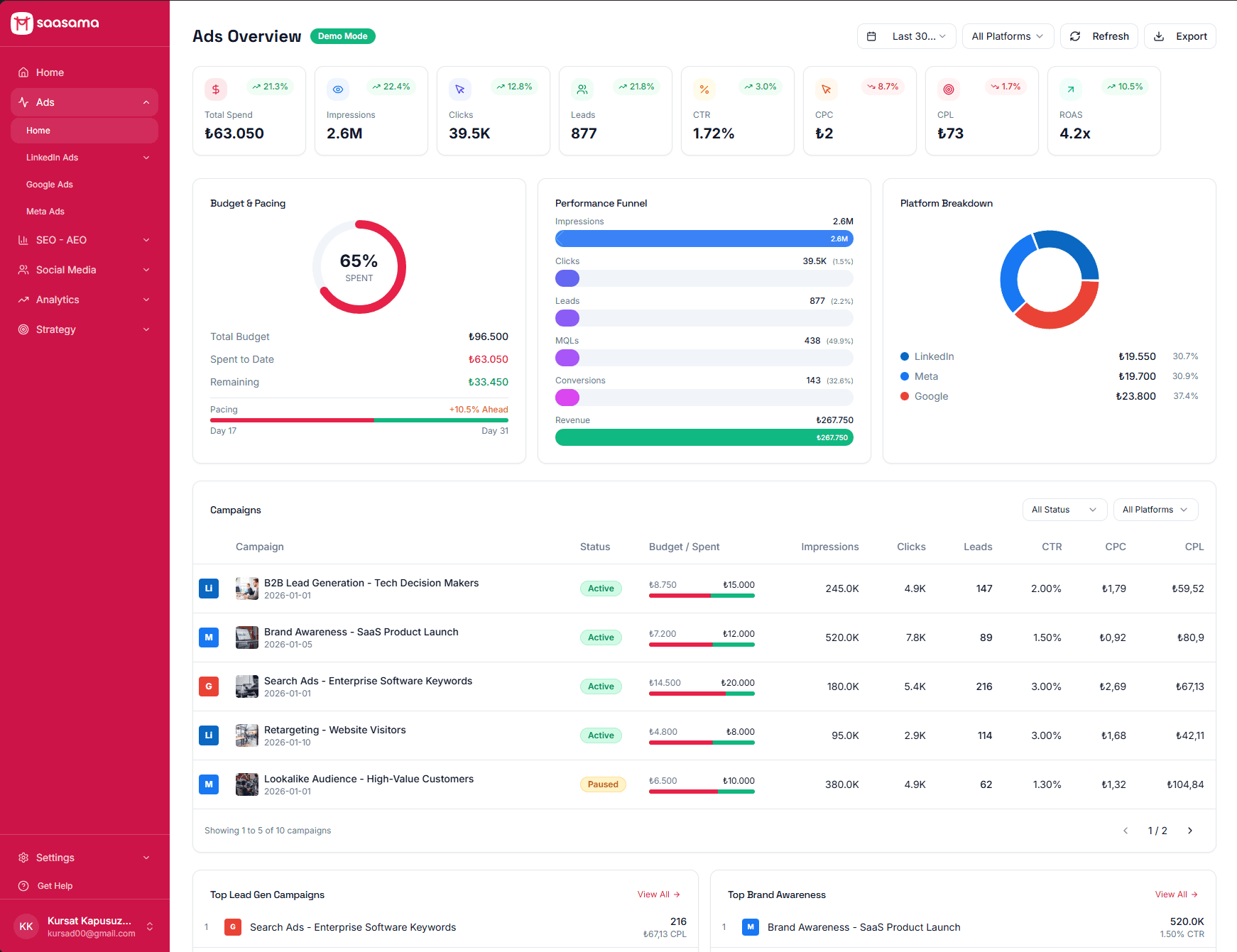 “With the help of Saasama, we were able to obtain a notable speed increase in digital marketing strategy, which completely changed the way we make decisions. ”